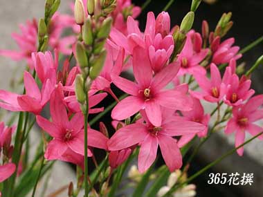 南アフリカ原産の半耐寒性種で、やや寒さに弱いので寒地では鉢栽培となりますが、温暖地では庭植えが可能です。 (強い、比較的強い、やや弱い、弱い、の4区分。判断基準は、こちら) 栽培難易度 比較的やさしい (やさしい、比較的やさしい、やや難しい、かなり難しい、の4区分) 学名の説明 Ixia・・・・・「鳥もち」の意味で、ネバネバした液汁があることに由来します。 columellaris・・・・・「円柱状」 maculata・・・・・「斑点のある」 polystachya・・・・・ギリシャ語の poly(多い)+ stacyus(穂状花)が語源です。 rapunculoides・・・・・「ラプンクルス属に似た」 viridiflora・・・・・「緑花の」 |