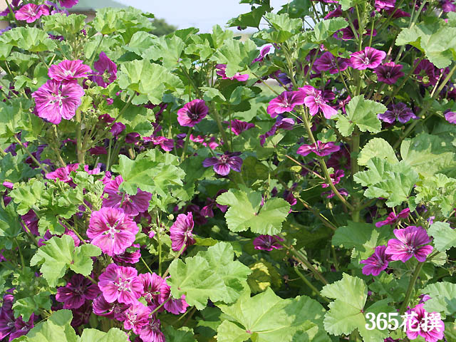 コモンマロウは、ヨーロッパ、西アジア、北アフリカが原産のアオイ科ゼニアオイ属の宿根草で、ウスベニアオイとも呼ばれます。 コモンマロウの学名は、マルバ・シルベストリス(Malva sylvestris)ですが、この仲間には変種のゼニアオイがあります。また、‘ブルーファウンテン'などの園芸品種もいくつかありますが、これらは、通常はコモンマロウとは呼びませんので別に、マロウとして取り上げています。 ところで、コモンマロウの和名はウスベニアオイですが、通常、上の写真の花を一般にコモンマロウと呼んでいる場合が多いようです。どう見ても赤紫の花色を薄紅とは言えないと思いますが、ここでは、とりあえず上の写真の品種をコモンマロウとしています。 ウスベニアオイとされているものは、その名のとおり桜色の花が咲くもので、どうやら混同されているのではないかと思われます。 また、しばしば、よく似た花が咲くゼニアオイを間違えてコマンマロウとしている場合があります。よく見ると花色も違いますが、ゼニアオイの草丈は1mほどであるのに対し、コモンマロウは2m近くなりますので見分けがつくかと思います。 なお、一般に、単にマロウという場合は、コモンマロウを指しますが、マロウという名前がついているものは他にもいくつかあります。ゼニアオイ属でないタチアオイ属の中にも、マロウという名前の付いたものがあります。 【栽培メモ】 秋播きにして育てたところ、非常に丈夫で生育が旺盛なことから、2年目には草丈が背丈を超えるほどになました。 なお、耐暑性はそれほど強くなく、2年目によく咲いた株はほとんど枯れてしまいましたので、短命な宿根草と考えるべきかと思われます。 |