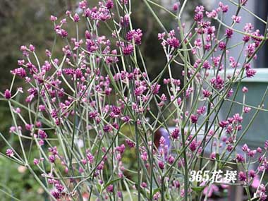 草丈 園芸店やホームセンターなどでは、30cm程度の株が売られていますが、宿根すると翌年は1mほどになります。 花 赤紫色のとても小さな花が咲きます。ピンクの花が咲く品種もあります。