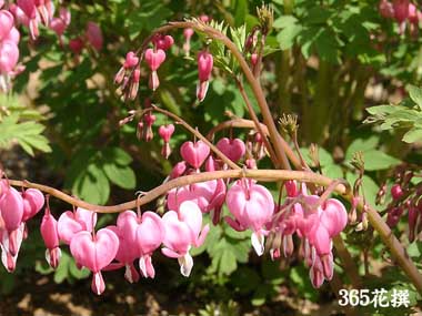 草丈 30〜60pほどになります。 花 ハート型の花径2pほどの花を、横に伸ばした花茎に一列に咲かせるので人気があります。 花色は、桃色が一般的ですが、白花もあります。