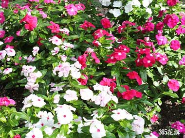 草丈 25〜30p程度です。 花 花径は3〜5p程度です。花色は、白、白に赤目、桃、濃桃、赤などの色があります。 ニチニチソウと言っても、花は一日でなく2〜3日咲いています。