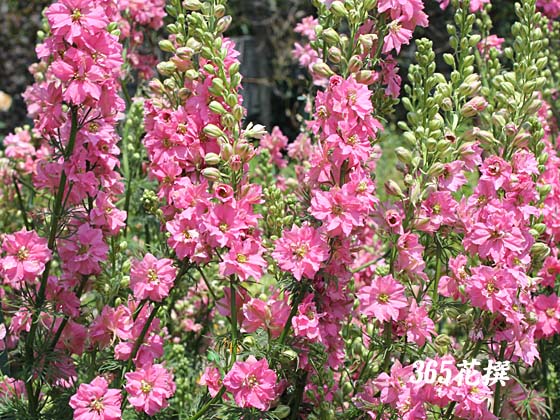 草丈 草丈は、1〜1.5m近くになります。 花 デルフィニュームと比較すると一回り小ぶりです。 色は、紫、ピンク、赤、白と各色があります。最近の品種は、花付きもよく大変見栄えがします。 耐寒性・耐暑性